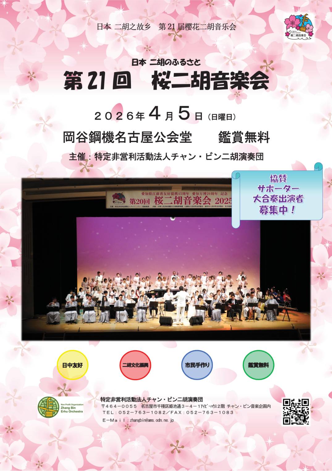 | イベント演奏 | 4月2日(日) | ●第18回桜二胡音楽会2023 (名古屋市公会堂(鶴舞公園内)) |